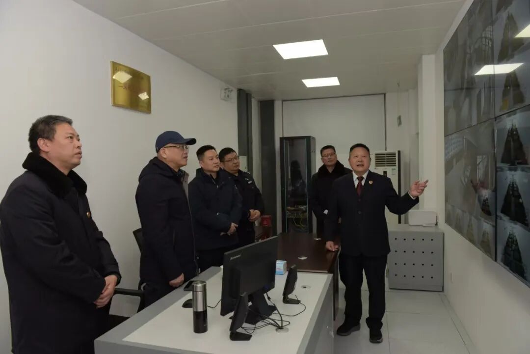随后,严毅检察长一行实地察看了派驻检察监控室、办公区等场所,观看监控系统演示,对派驻检察室日常履职情况、人员配备等情况进行细致检查和指导。严毅对驻所检察室建设进行指导并指示:驻所检察室要紧紧围绕“高质效办好每一个案件”基本价值追求,更好落实“派驻+巡回+科技”监督机制,充分发挥派驻检察室前沿阵地作用,从规范派驻检察履职、数字检察赋能、创新工作方式等方面全面提升派驻检察工作质效,切实维护好刑事执行公平公正、刑事执行场所监管秩序稳定和羁押人员合法权益。