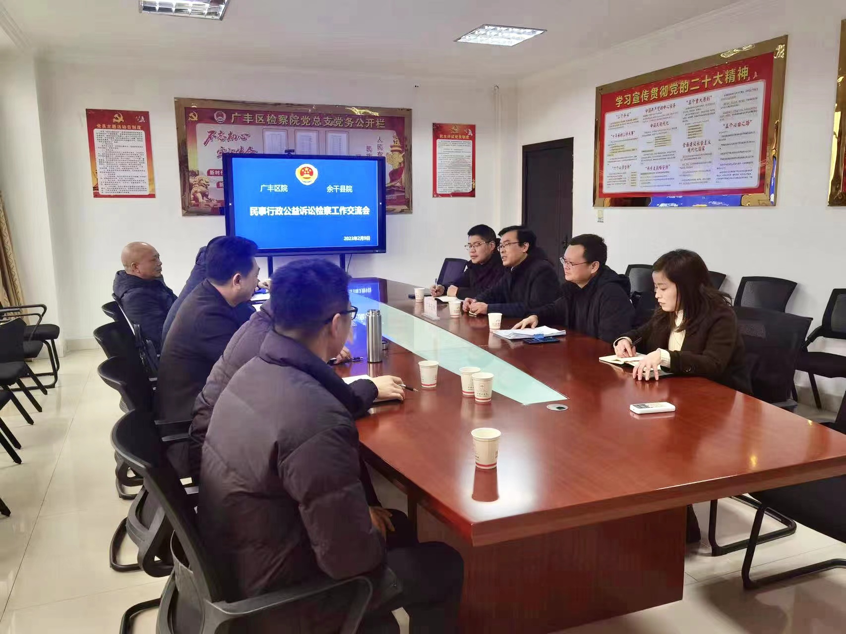 为实现两地检察院优势互补,强弱项、补短板,进一步提升检察工作质效。2023年2月9日,余干县检察院党组成员、副检察长周俊率队到我院就民事、行政、公益诉讼检察工作开展座谈交流。