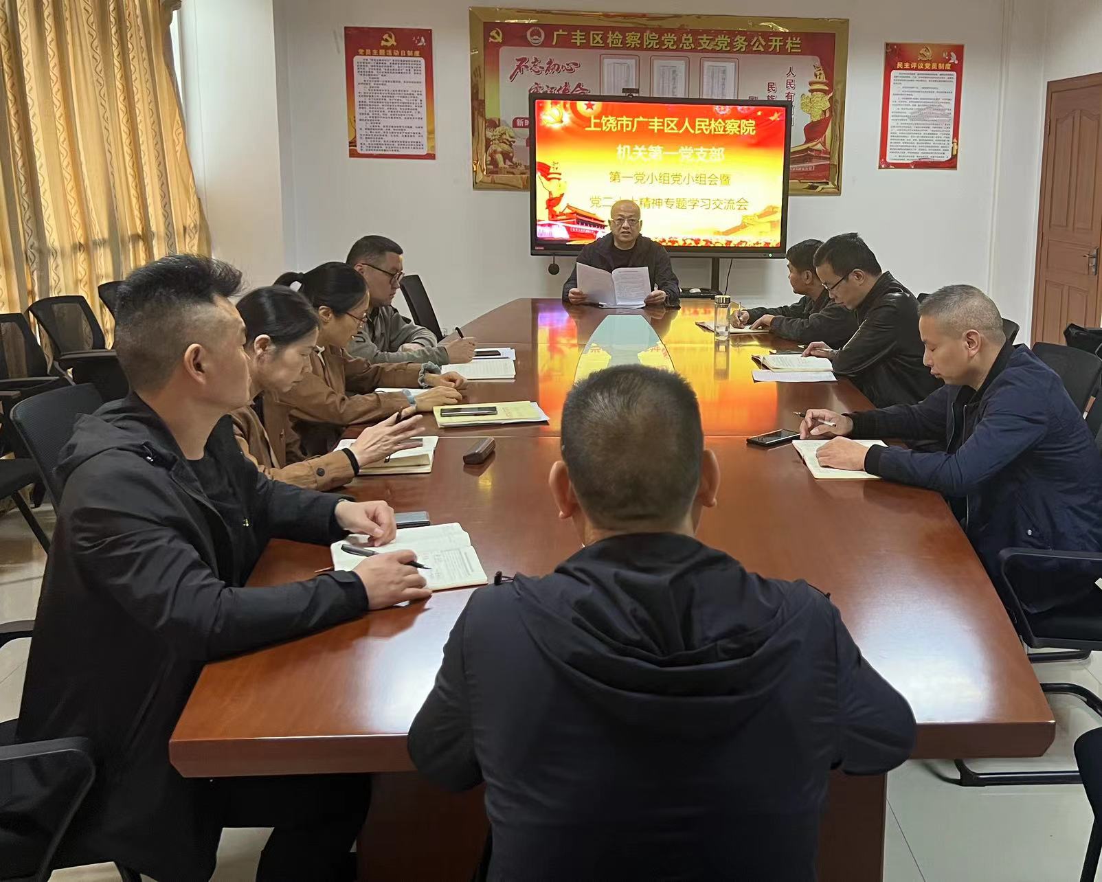 10月27日,广丰区人民检察院机关第一党支部两个党小组分别召开党小组会议暨党的二十大精神学习交流会,全体党员集中学习了党的二十大报告并就党的二十大提出的新理念、新要求、新部署进行深入学习,党员干警依次进行研讨发言,开展讨论交流,分享心得体会。大家纷纷表示,要保持绝对忠诚的政治品格,锤炼素能过硬的攻坚本领,坚持以先进理念为引领,对标人民群众更新的期待和更高的要求,以更优的检察履职为民办实事。要立足岗位,担当作为,将二十大精神与检察业务工作相融合,以高度的责任感、使命感贯彻检察工作理念,以饱满的热情、充足的干劲推进新时代检察工作高质量发展。