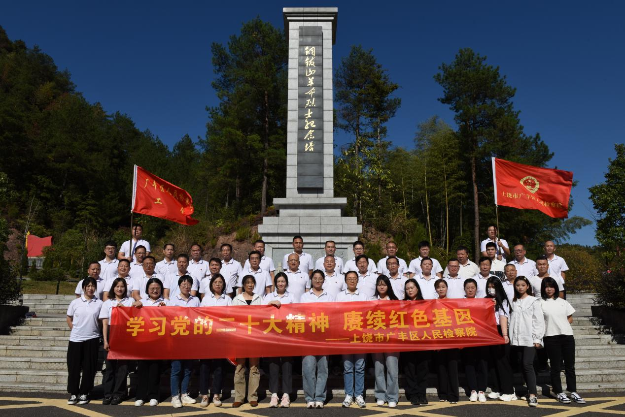 为深入贯彻落实党的二十大精神,传承红色基因,广丰区检察院全体干警赴铜钹山红色教育基地开展红色主题教育。
