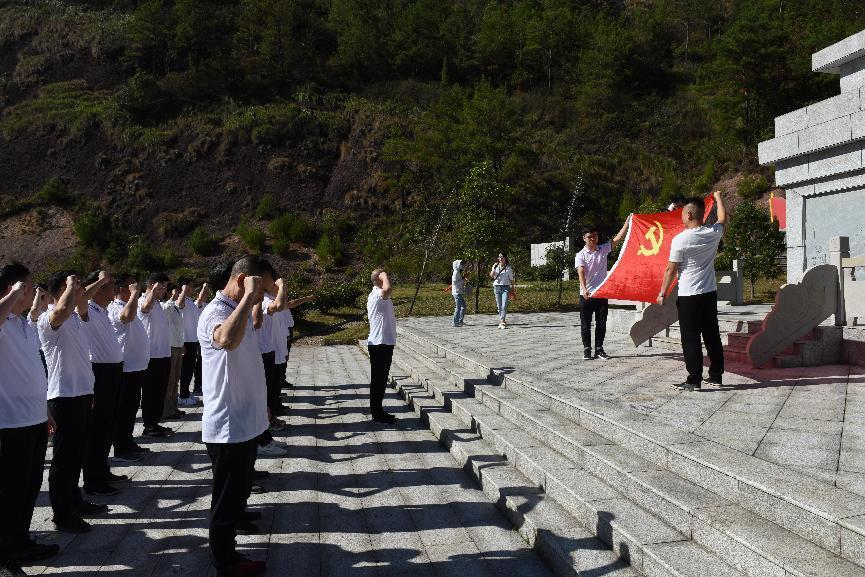 丰碑矗立,英魂永存。在铜钹山革命烈士纪念塔前,在鲜红的党旗下,广丰区院党组书记、检察长严毅带领全体党员重温入党誓词,感悟初心使命。党员们在党旗下接受心灵的净化和洗礼,认真听取讲解员关于二十一位烈士的英勇事迹,回顾革命先烈们不畏牺牲、前赴后继的悲壮画卷,缅怀革命先烈崇高的革命情怀和砥砺奋进的革命精神,纷纷表示要牢记共产党员的政治责任和历史使命,以更加饱满的热情投身于检察事业中,全力发挥共产党员的先锋模范作用。