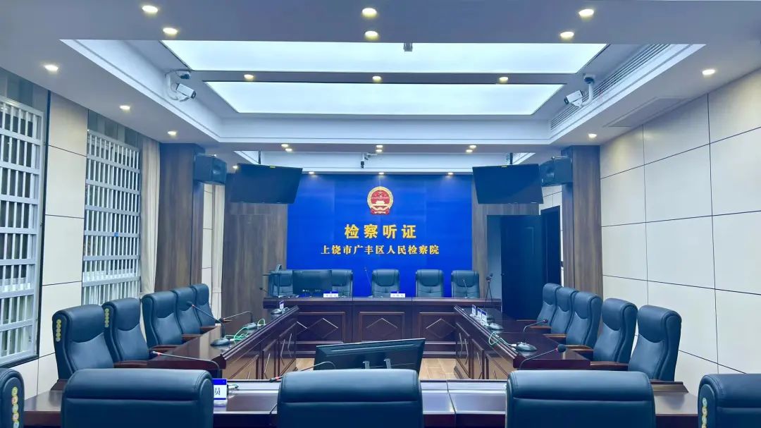 为深入推进司法公正,深化检务公开,提升办案质效,广丰区人民检察院严格遵循最高人民检察院《人民检察院检察听证室设置规范》和《检察机关听证室建设技术指引》要求,新建成了规范化的检察听证室。该听证室配备了多项标准化设施,具备证据展示、全方位大屏显示、同步录音录像、听证过程管控、互联网直播、设备联动、数据汇集等多种功能,让受邀的听证人员能够以“看得见”的方式参与检察办案,更加有效、更加准确地提出监督意见,全面满足了听证业务规范化、听证过程可留痕、听证设备便管理的需求。