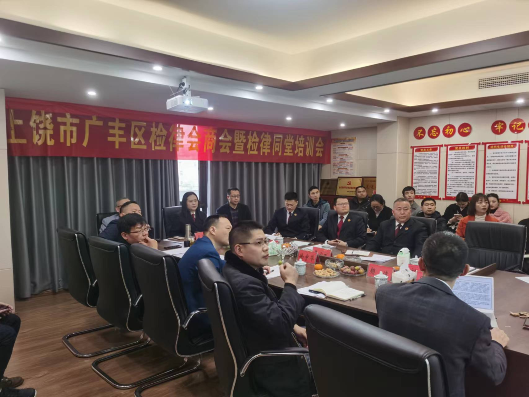 为切实维护司法公正,提高司法公信力,进一步加强法律职业共同体建设,依法保障律师执业权利,构建彼此尊重、平等相待、良性互动的新型检律关系,近日,上饶市广丰区人民检察院与上饶市广丰区司法局共同召开了检律会商会暨检律同堂培训会。区检察院党组副书记、副检察长吴必礼,第二、第三检察部主任,区司法局副局长徐宇华及各律师事务所主任参加会议。
