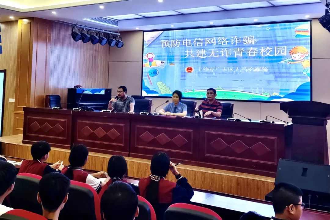 为进一步增强在校学生对电信网络诈骗的抵御能力,预防校园电信网络诈骗案件发生,近日,广丰区人民检察院组织开展反诈宣传进校园活动,检察官们走进广丰区实验中学为学生们带来一堂以“预防电信网络诈骗、共建无诈青春校园”为主题的法治课。