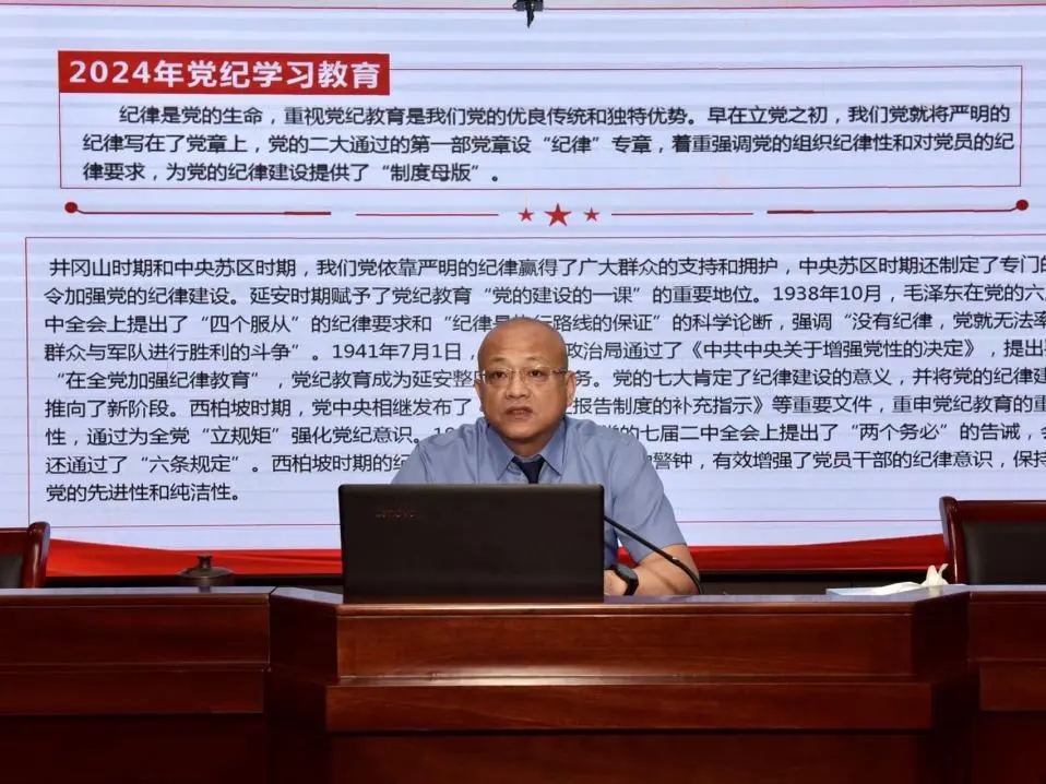 读书班期间,严毅同志以“学条例 守党纪 锻造忠诚干净担当广检铁军”为主题,围绕《条例》历史沿革、本次修订情况、如何贯彻落实好等方面,讲授了一节专题党课。徐洪辉同志就新修订《中国共产党纪律处分条例》进行深入解读,为全体党员干警上了一堂深刻严肃、生动丰富的专题辅导课。